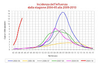 The swine flu cases are decreasing in Italy. The national incidence has fallen to 0.664%. Only in two regions, in Sardinia and in Friuli Venezia Giulia, the pandemic is still at its peak. Meanwhile, the deaths have stopped to 114 (in Campania region 28), and to 410 the cases who needed respiratory aid. The government's ad is still aired on the State television to invite people to get the vaccine. Until now 611,425 people got the shot. 2 Dec 2009